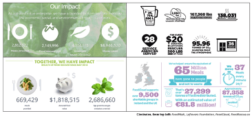 FoodRescue.ca measures impact in terms of pounds of food recovered (700,000 lbs to date), non-profits registered (848), businesses registered (1,077), greenhouse gas (GHG) emissions averted (over 2.5 kg) and food claim rate (96%) (V. Summerhill, personal communications, Nov. 8 & 28, 2019).